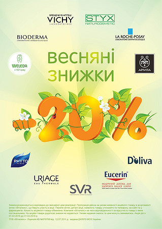 Приглашаем Вас воспользоваться отличным весенним предложением: скидка 20% на популярные торговые марки косметики: