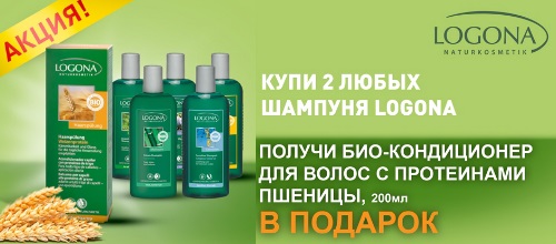 При покупке от 2-х шампуней Logоna Naturkosmetik получи в ПОДАРОК Кондиционер для волос ежедневное питание с протеинами Пшеницы 200 мл!