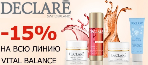 | Описание акции: | Vital Balance Витаминный Баланс СКИДКА -15% от DECLARE! Холодным февралем коже просто необходима поддержка! Серия Vital Balance Витаминный Баланс от швейцарской косметики Declare восполняет дефицит микроэлементов в коже, тем самым возвращае коже эластичность, упругость и сияние! Воспользуйтесь акционным предложением ко дню Св.Валентина СКИДКА -15% на серию Vital Balance! ![]() Купить косметику Vital Balance. *скидка проведена в цене и не суммируется с накопительной скидкой VivaКлуб. | ||||||