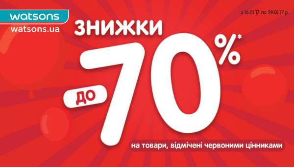 Описание акции: | Шукайте жовті цінники в магазинах Watsons та отримуйте знижки до 70% на товари![]() | ||||||