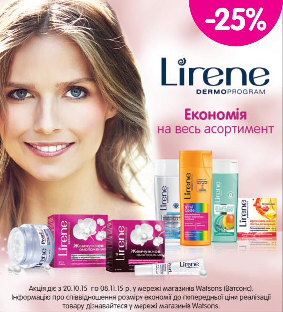 Описание акции: | Знижки 25% на весь асортимент від ТМ Lirene!![]() | |