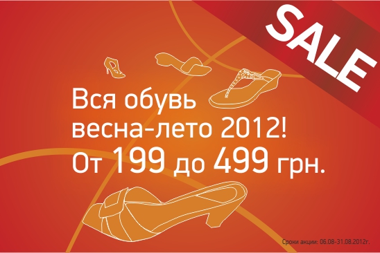 Описание акции: | СКИДКИ ДО 70% Грандиозная распродажа от Welfare! Спешите приобрести обувь из коллекции "Весна/Лето-2012" по новым освежающим ценам! ![]() Босоножки (нат. шкіра) - 259 грн., 299 грн., 349 грн.... Балетки - 149 грн., 199 грн., 2999 грн., 399 грн... ![]() ![]() | ||||||