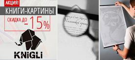 Описание акции: | Скидка -15% на KNIGLI![]() KNIGLI - это необычная книга-картина. Вся книга на листе А2, при этом буквы из книги формируют иллюстрацию из произведения | ||||||