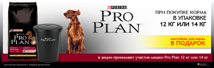 Описание акции: | При покупке корма для собак Purina Pro Plan в упаковке 12 кг или 14 кг - контейнер для корма в подарок!![]() *в акции принимают участие корма для щенков и для взрослых собак, ветеринарные формулы не принимают участия в акции | ||||||