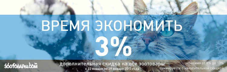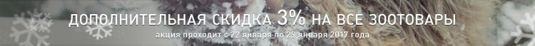 | Описание акции: | Дополнительная скидка 3% на все зоотовары![]() ![]() | ||||||