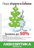 Описание акции: | Все покупатели смогут купить себе понравившиеся оправы или солнцезащитные очки со скидкой до 50%. Как это сделать? Все очень просто! Приходите в ближайшую оптику и окунитесь в теплую праздничную атмосферу.