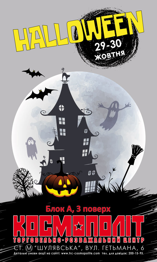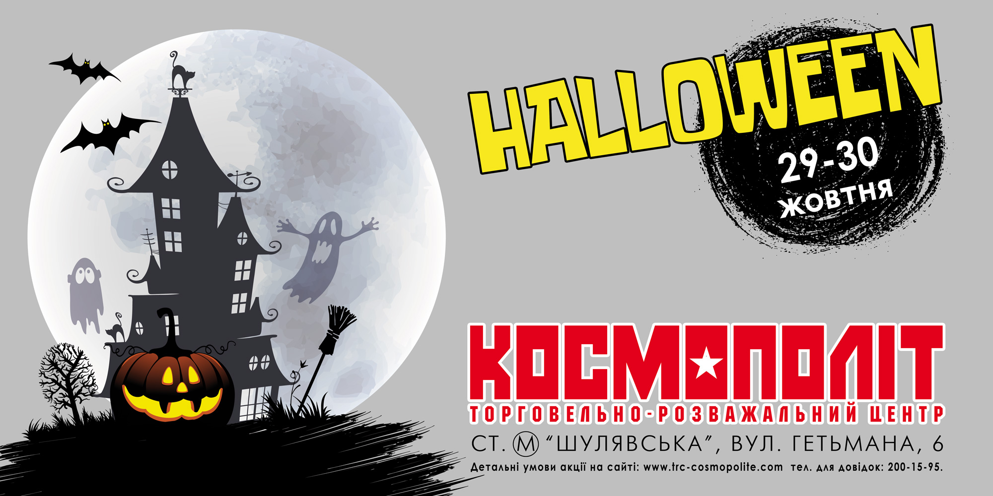 29-30 октября - Хэллоуин в ТРЦ «Космополит»![]() Один из древнейших кельтских праздников Хэллоуин посетит нас в ТРЦ «Космополит». В рамках праздника с 12-00 вас ждет макияж нечисти, апартаменты графа Дракулы, мистическая ярмарка и паркинг ведьминого транспорта. В течение двух дней вы сможете прогуляться по кладбищу «Не очень потерянных душ», направляясь к мистической ярмарке, а по дороге заглянуть в будущее вместе с ведьмой-провидицей. Самые активные получать угощение «Страшное снаружи - вкусное внутри» у демонических официантов. Атмосферу дополнят костюмы, декорации и аквагрим и не оставят равнодушным никого! Гостям в тематических костюмах гарантированные призы прямо с Адской кухни. Приходите 29 и 30 октября на празднование Хэллоуина в ТРЦ «Космополит» ул. Гетьмана, 6, м. Шулявская Детали на сайте www.trc-cosmopolite.com ![]() 29-30 жовтня - Хеллоуін у ТРЦ «Космополіт» Одне із найдавніших кельтських свят Хеллоуін завітає до нас у ТРЦ «Космополіт». У рамках свята з 12-00 години на вас чекає макіяж нечесті, апартаменти графа Дракули, містичний ярмарок та паркінг відьмацького транспорту. Протягом двох днів ви зможете прогулятися по кладовищу «Не дуже загублених душ», прямуючи до містичного ярмарку, а по дорозі зазирнути у майбутнє разом з відьмою-провидицею. Найактивніші отримають своє частування «Страшне зовні – смачне всередині» у демонічних офіціантів. Атмосферу доповнять костюми, декорації і аквагрим та не залишить байдужим нікого! Гостям у тематичних костюмах гарантовані призи прямісінько з Пекельної кухні. Приходьте 29 та 30 жовтня на святкування Хеллоуіну до ТРЦ «Космополіт» вул. Гетьмана, 6, м. Шулявська Деталі на сайті www.trc-cosmopolite.com |
