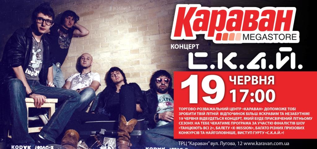19 июня в ТРЦ Караван состоится сольный концерт группы «Скай»! Шоу начнется в17:00 по адресу ул.Луговая, 12.