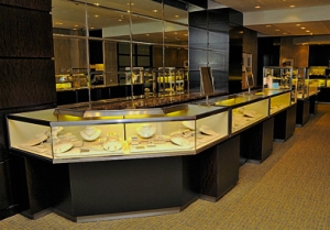 Сразу возле входа расположена витрина с украшениями из серебра. Кстати, компаньоны Tiffany и Young были первыми в Америке, кто утвердил стандартом для своих изделий серебро 925-й пробы. Представлена одна из самых узнаваемых коллекций компании — Return To Tiffany, символом которой является сердце с гравировкой. Подвеска из этой серии обойдется в 1378 гривен, серьги — 2411 гривен, браслет — 2893 гривни. По соседству — украшение из полых серебряных бусин. Одна нить стоит 3444 гривни, двойная — 6888 гривен. Коллекция с изображением римского циферблата — козырь ничуть не меньший, чем упаковочные голубые коробочки и Одри Хепберн. Стоимость серебряных сережек из этой серии — 3444 гривни, браслета — 4822 гривни. ![]() Вдоль одной из стен расположена витрина с изделиями из платины и с бриллиантами. Туда можно сходить на экскурсию, как в музей. Интересное отличие платиновых изделий от всех остальных (кроме цены) — они все хранятся на шелковой материи. Серьги Tiffany Jazz с бриллиантами обойдутся в 74 385 гривен, подвеска в виде сердца с розовыми сапфирами — 33 749 гривен. Кстати, некоторые камни, например, рубины, компания не использует, в связи с тем, что их добыча считается низкооплачиваемым трудом.