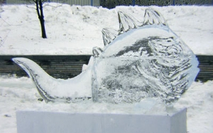 ![]() В зоопарке открылась выставка ледяных фигур, среди которых искусно вырезаны фигуры животных, абстрактные композиции и настоящий ледяной трон, который светится изнутри в темное время суток. Сев на него, можно почувствовать себя настоящей Снежной королевой или королем.