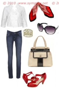 - Не очень выигрышно смотрятся красные туфли с легкой джинсовой тканью. На их фоне джинсы будут выглядеть размытыми и блеклыми. - Красные туфли прекрасно смотрятся с чулками и колготками телесного цвета или с легким оттенком загара. Разноцветные колготки абсолютно не сочетаются с красными туфлями. Красные туфли на большой платформе – это удел танцовщиц и солисток группы Spice Girls. Выбирайте туфли на изящном каблучке, танкетке, тонкой шпильке или плоской подошве. Следите, чтобы на ногах туфли не смотрелись массивно. Источник ![]() |