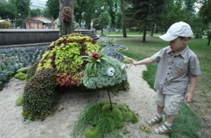 В Киеве высадили черепаху и крокодила Гену из цветов