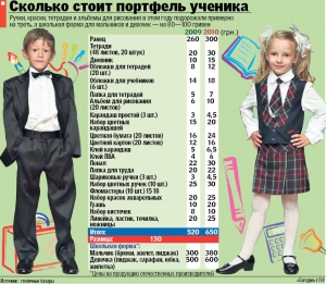 С понедельника в столице начнут разворачивать школьные ярмарки. В среднем школьный портфель по деньгам потяжелеет на треть.