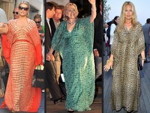 Мода на свободные платья распространилась с пляжей на улицы городов, найдя поддержку среди американских знаменитостей. Так, в июле певица и актриса Джессика Симпсон появилась в таком платье на острове Капри, где она со своим парнем Эриком Джонсоном праздновала день рождения. На ней было свободное платье оранжевого цвета с принтом под жирафа. В эти же выходные в прекрасном леопардовом платье на курорте Хэмптонс была замечена модный стилист Рейчел Зоуи, а госсекретарь Хилари Клинтон пришла на репетицию свадьбы своей дочери Челси в просторном бирюзово-голубом платье без пояса. ![]() |