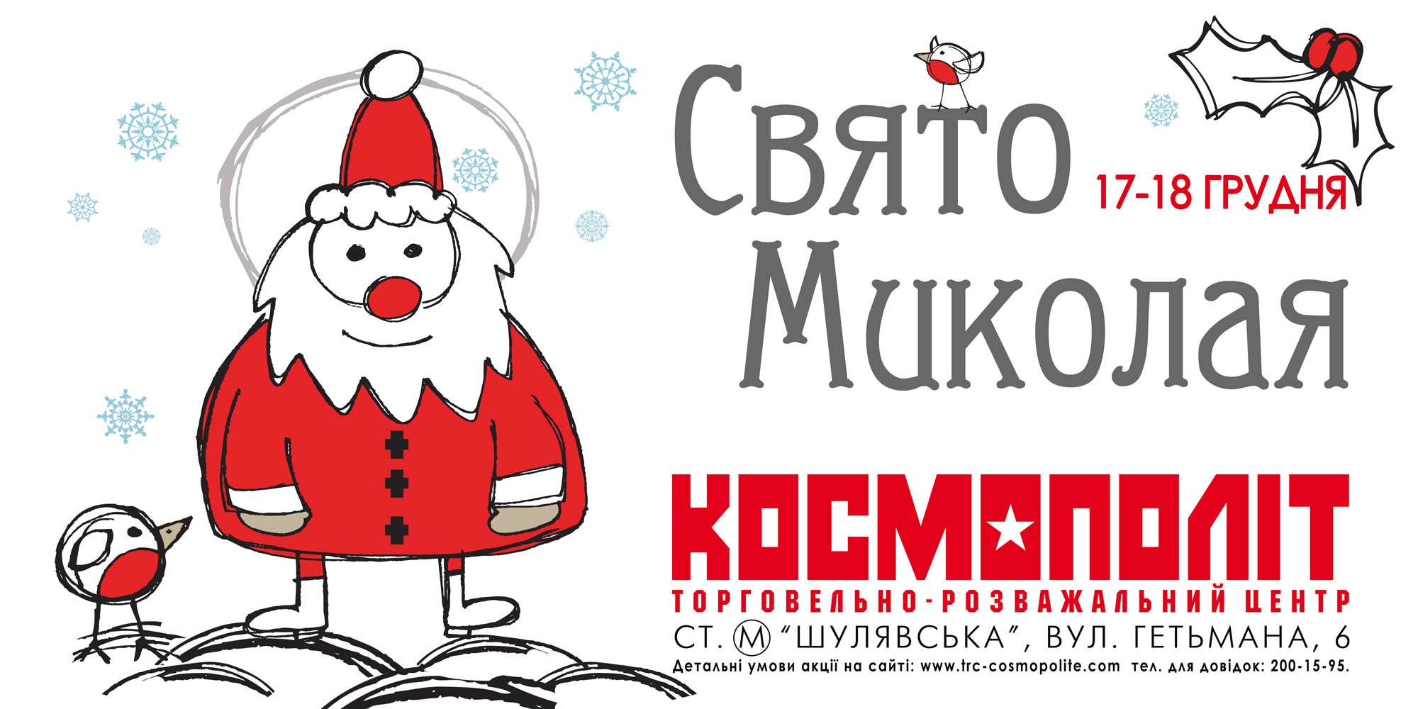![]() Свято Миколая в ТРЦ «Космополіт» 17 та 18 грудня ТРЦ «Космополіт» запрошує всіх на зимові веселощі! У програмі з 12.00: